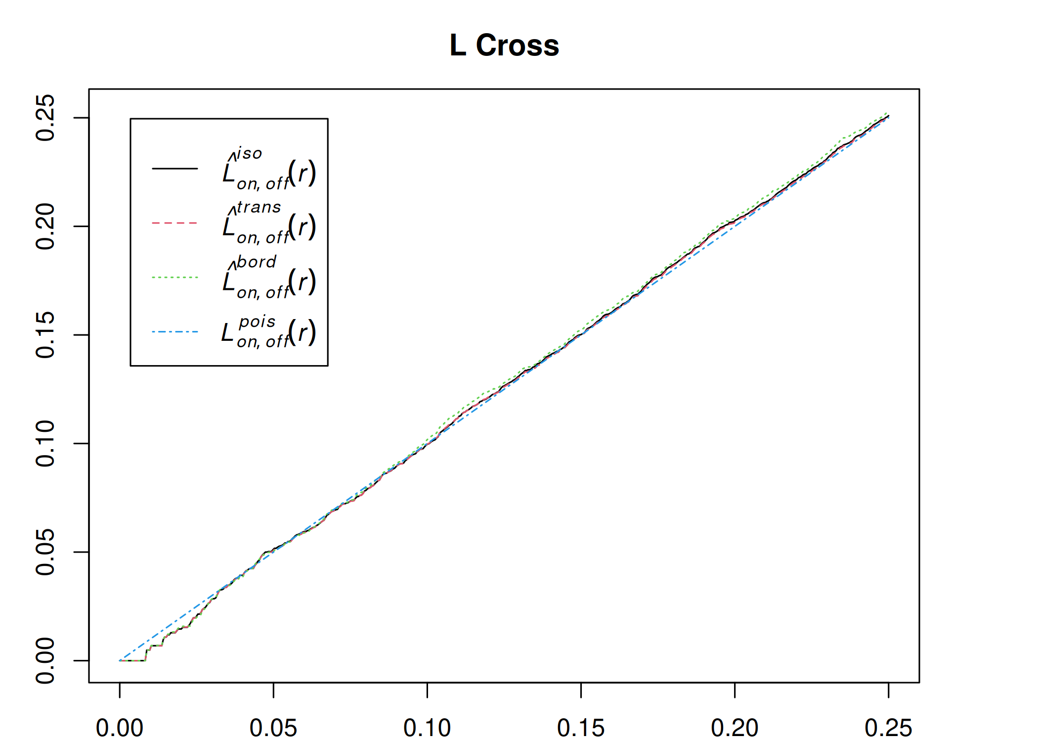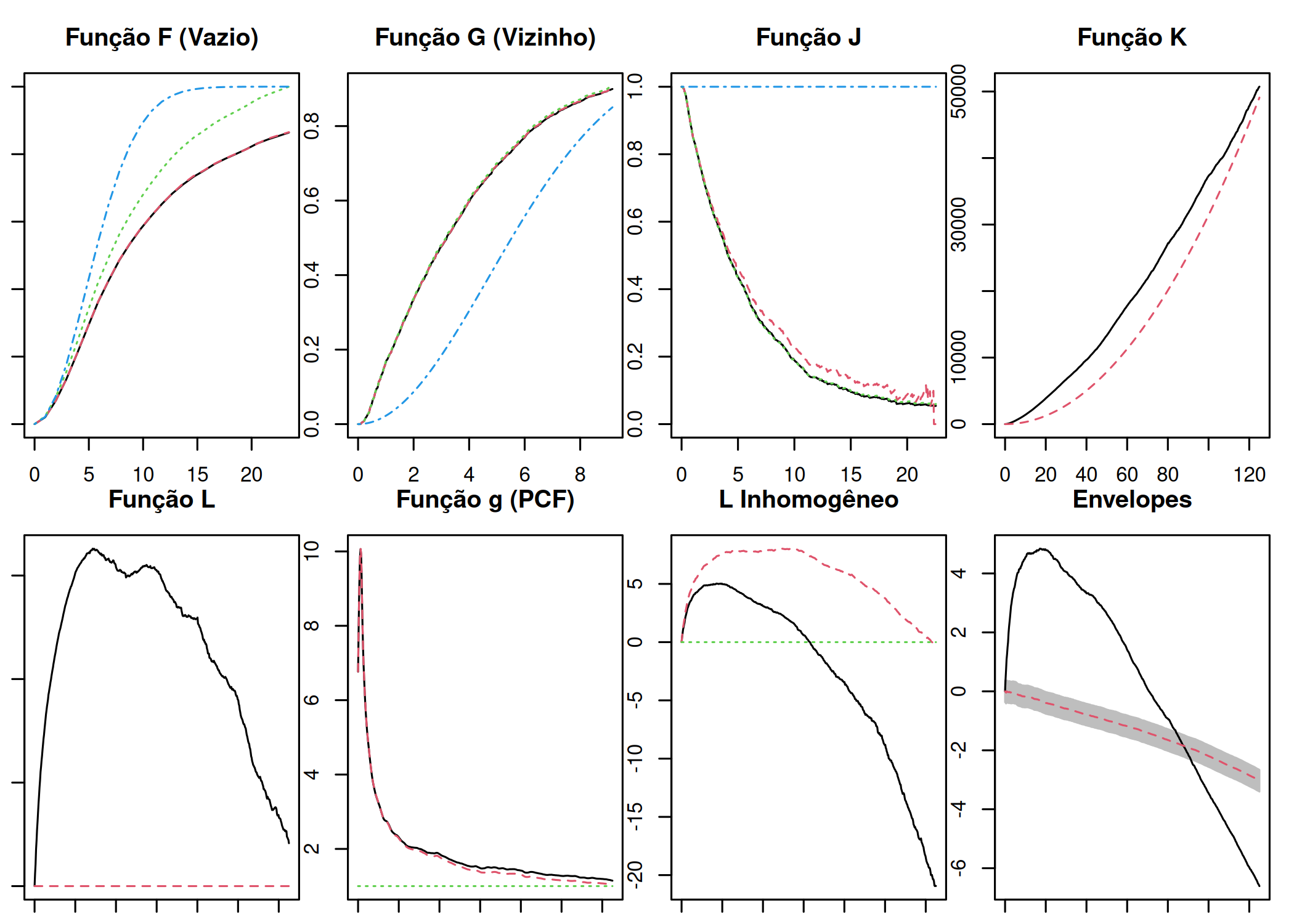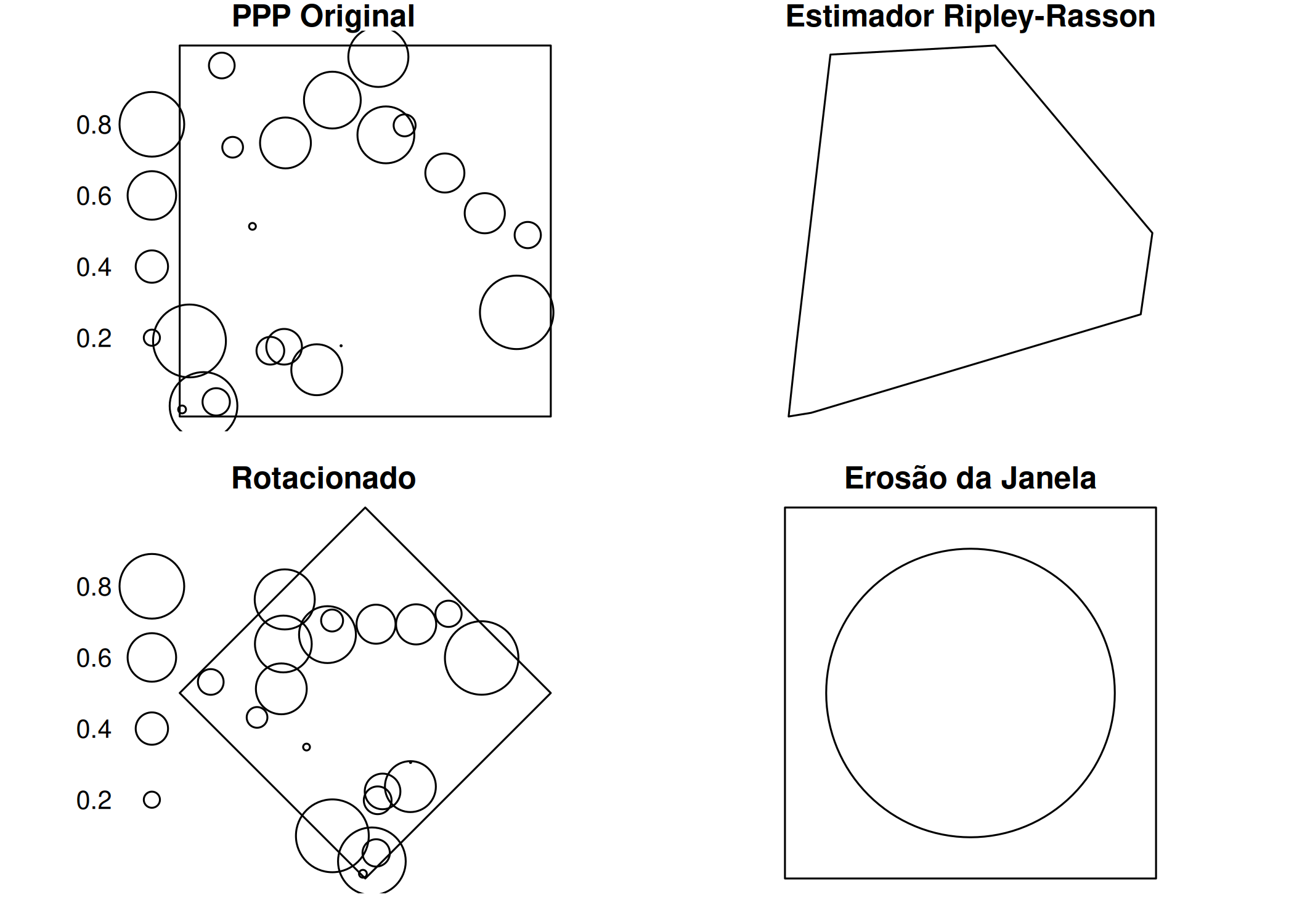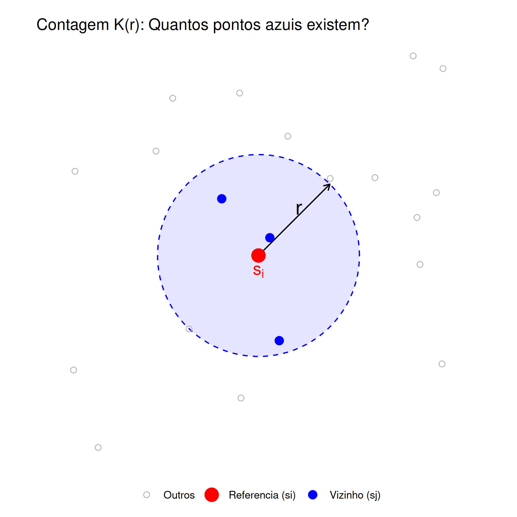 Um processo pontual é isotrópico se a distribuição espacial dos eventos é invariante sob rotação em torno da origem (Moller e Waagepetersen 2003; J. Illian et al. 2008; Wiegand e Moloney 2014; Scalon 2024).