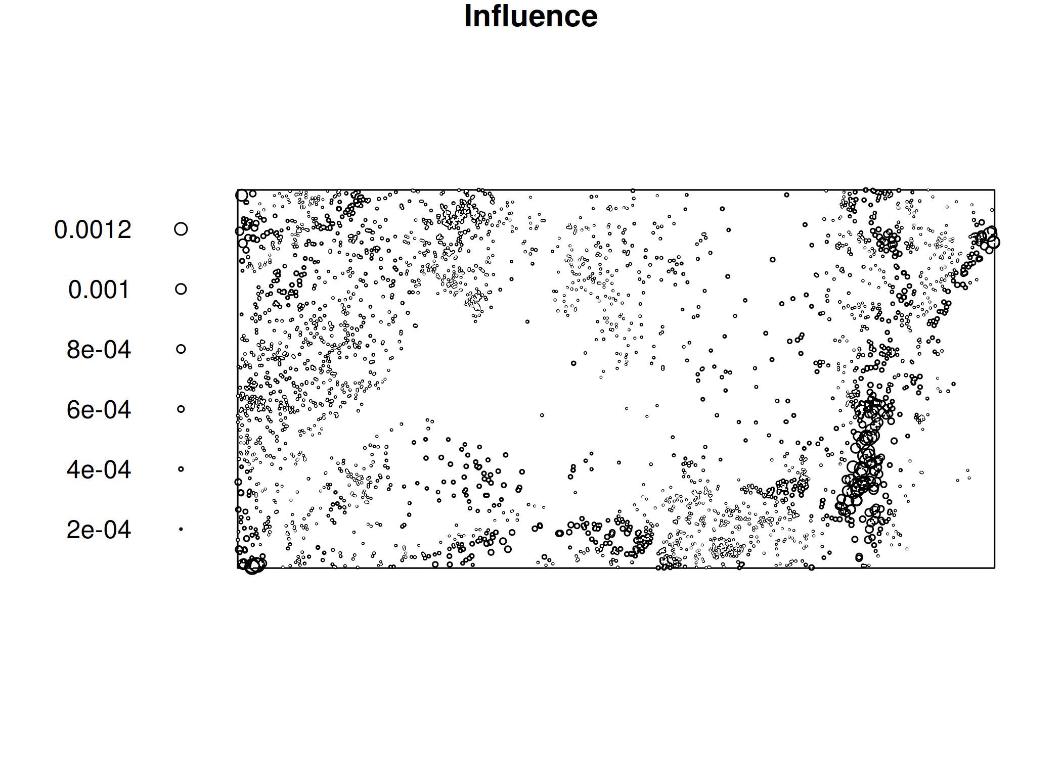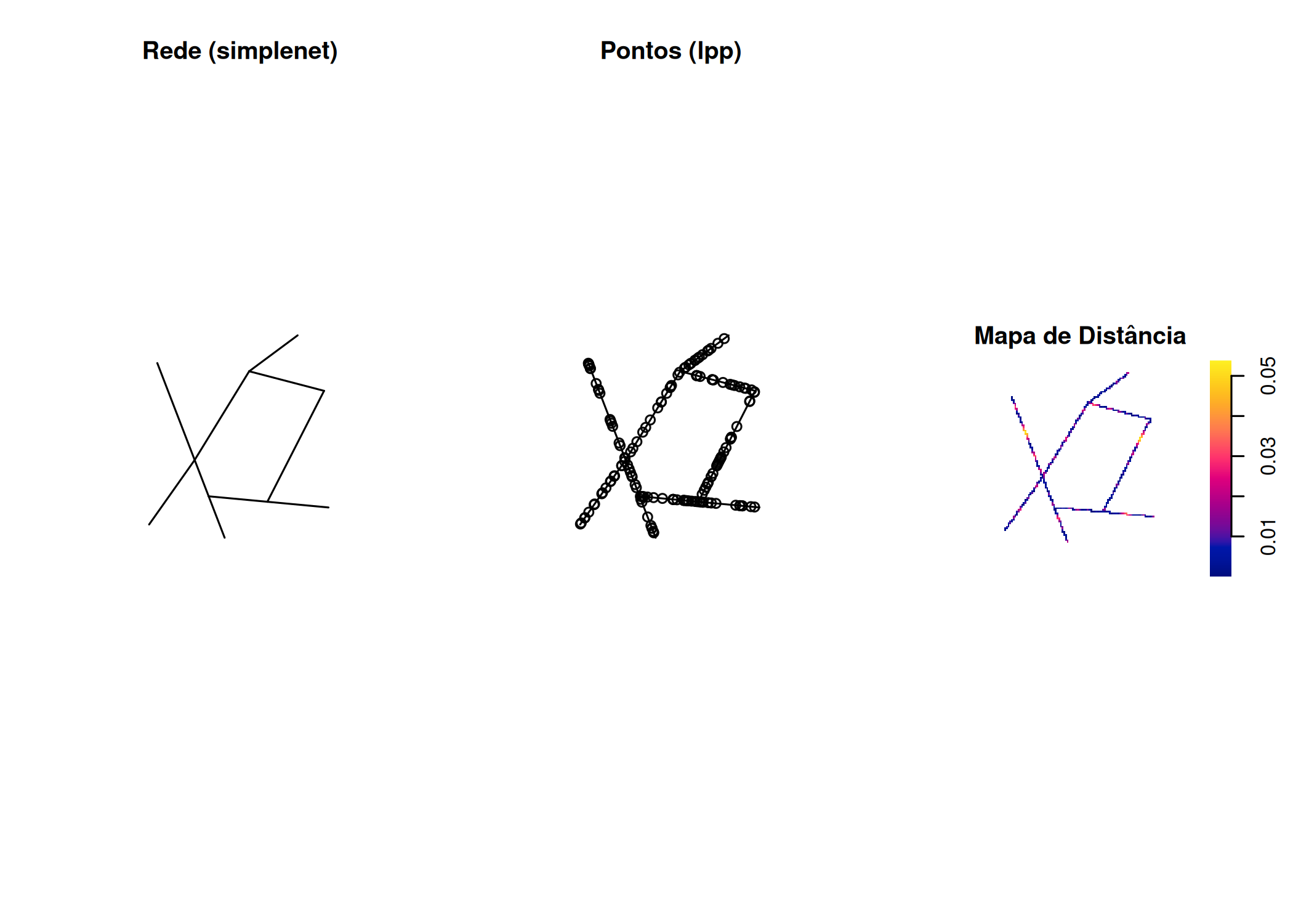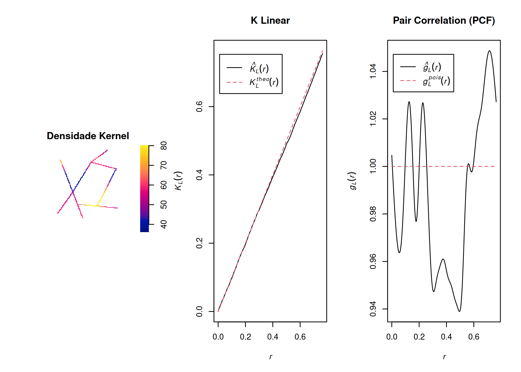 onde \(\hat{\lambda}(s)\) é denominado estimador da intensidade \(\lambda (s)\), e corresponde ao número médio de eventos por unidade de área ou volume sob condição de homogeneidade.