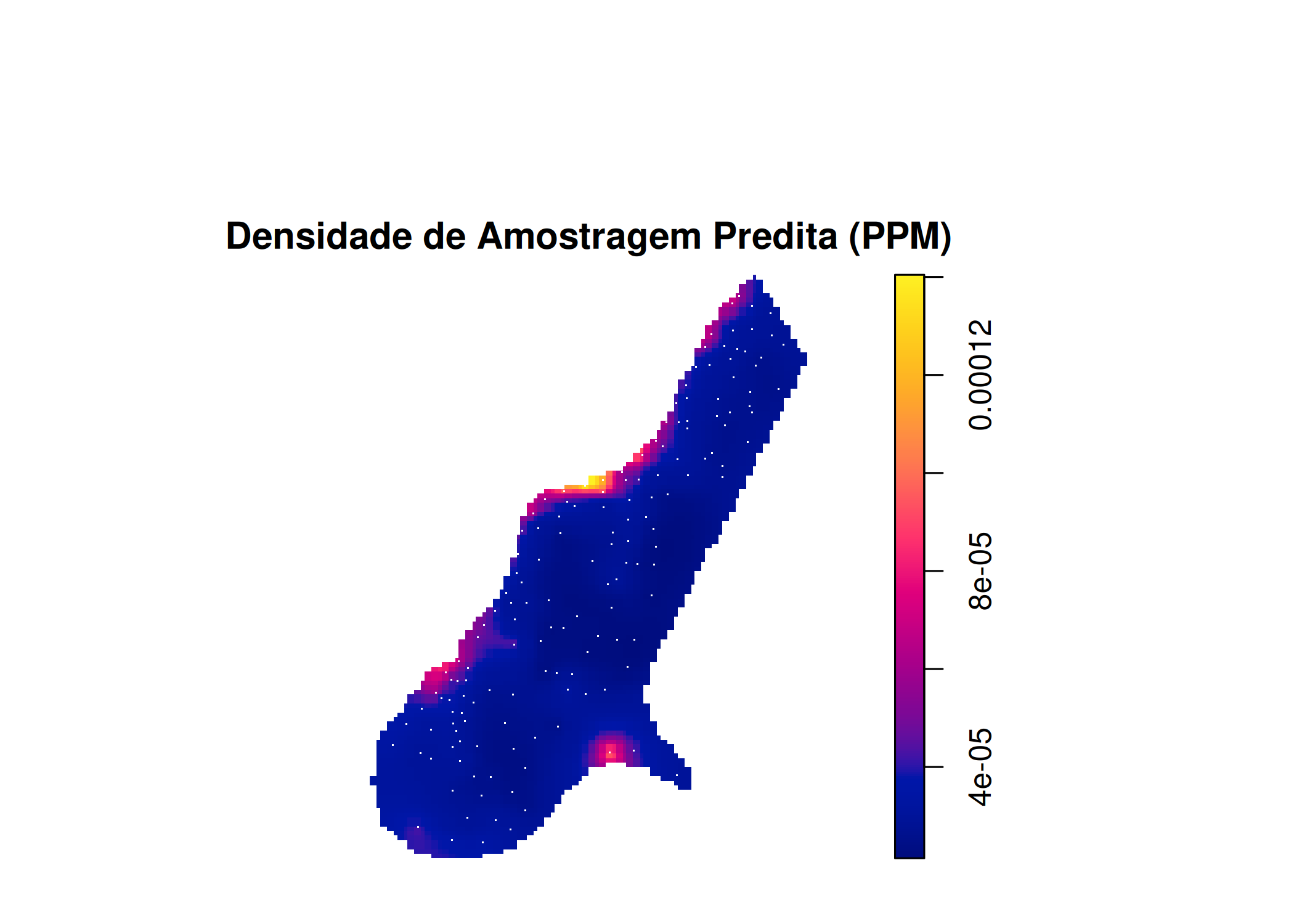 plot(mapa_predito, main = "Densidade de Amostragem Predita (PPM)")
