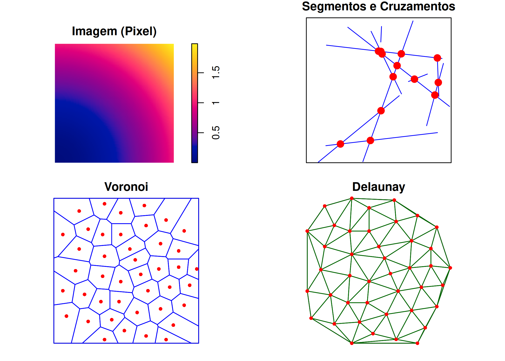 \(\lambda (s_{i}) = \lim_{|S_{i}| \to 0} \left\{\frac{ \mathbb{E}[n(s_{i})]}{|S_{i}|}\right\}\), conforme descrito por Mateus (2013), Pebesma e Bivand (2023) e Moraga (2023).